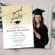 Invitation Elégante Photo Black Gold Script Graduation Party