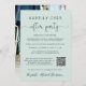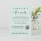 Élégant salon vert menthe ou faire-part mariage privé et accueil. "Happily Ever After Party" est écrit dans un mélange de typographie simple et d'un script élégant avec des swashes. Personnalisez votre message et votre invitation, entrez l'adresse de votre site Web mariage pour créer un code QR pour que vos invités puissent scanner pour plus d'informations et à RSVP en ligne, et ajoutez vos noms dans un script de type signature. Au verso, vous trouverez votre photo de mariage préférée, vos noms et dates de mariage et de réception.
