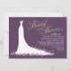 Élégante invitation à la douche nuptiale pour les futurs mariés élégants d'automne dispose d'une police de script de calligraphie ornée et robe mariage fluide. Les détails des fleurs, des fleurs et des papillons font ressortir la robe éthérée. Blanc, prune / aubergine violet, champagne or couleurs automne.