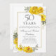 Modèle d'invitation élégant pour le 50e anniversaire de mariage avec un cadre doré et deux arrangements de roses jaunes. Tout le texte est modifiable.