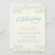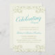 Une invitation stylée pour votre fête d'anniversaire de mariage de 50 ans. Un texte de script élégant indique "Célébrer 50 ans" dans une jolie teinte de bleu turquoise. De belles volutes dorées le long du haut et du bas de l'invitation encadrent le texte.