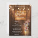 Cette carte d'invitation comprend un fond en bois rustique orné de guirlandes lumineuses et un simple mais beau pot rempli de fleurs fraîches.