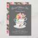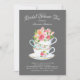 Tasses à thé en porcelaine vintage avec de jolies fleurs roses sur un fond de lin gris pour un thé de mariage.