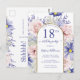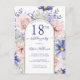 Cette invitation de fête d'anniversaire de 18 ans sous forme de carte postale présente des fleurs roses et violettes accentuées d'une bordure de paillettes dorées fausses pour personnaliser les détails de votre fête dans un script moderne. Le verso de la carte postale comporte un message que vous pouvez personnaliser. Conçu par Susan Coffey.