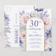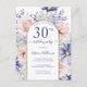 Cette invitation de fête d'anniversaire de 30 ans au design floral élégant présente des fleurs roses et violettes accentuées d'une bordure de paillettes dorées fausses pour personnaliser les détails de votre fête dans un script moderne. Le verso de la carte postale comporte un message que vous pouvez personnaliser. Conçu par Susan Coffey.
