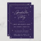 Une élégante et moderne Graduation Party Invitation avec une police manuscrite blanche et des étoiles dispersées contre un arrière - plan violet foncé. Tout le texte - à l'exception du script 'Graduation Party' - est entièrement modifiable, vous pouvez donc facilement ajouter ou supprimer du texte et modifier le style/la taille/la couleur/la mise en page de police pour répondre à vos besoins. D'autres couleurs et accessoires de coordination sont disponibles.