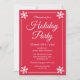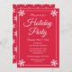 Invitation Élégante Red Snowflake Script Fête de vacances