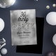Un modèle simple, moderne, élégant et chic 30ème anniversaire d'invitation avec un arrière - plan en feuille d'argent sur le devant (pas de vrai papier, c'est un effet numérique), le mot PARTY couvert de strass (aussi un effet numérique), script de calligraphie moderne et typographie en blanc. Un design chic et intemporel pour une femme à son trentième anniversaire !