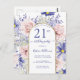 Cette élégante invitation de carte postale pour un 21e anniversaire à motif floral présente des fleurs roses et violettes accentuées d'une bordure à paillettes en faux or pour les détails de votre fête à personnaliser en écriture moderne. Le verso de la carte postale comporte un message que vous pouvez personnaliser. Conçu par Susan Coffey.