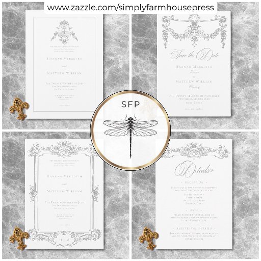 Venez passer une journée inoubliable avec notre faire-part de mariage baroque vintage et élégante, chef-d'oeuvre d'une élégance intemporelle. Doté d'un délicat médaillon de chinoiserie gris argent clair avec une urne et deux anges de chérubins sur un arrière - plan blanc immaculé, ce design dégage un charme et une sophistication classiques. Sa simplicité met en valeur ses détails raffinés, créant un design aussi gracieux que votre histoire d'amour. Un seul cadre fin complète l'aspect élégant. Parfait pour ceux qui chérissent la tradition et l'élégance. Créé par Simply Farmhouse Press.