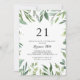 Cette élégante invitation à la fête du 21e anniversaire de feuillage vert tropical est parfaite pour une simple fête d'anniversaire. Ce design dessiné à la main présente une aquarelle de beaux feuilles verts.