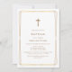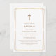 Invitation Élégante Typographie Or Croix Cadre Baptême