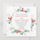 Cette belle et élégante invitation de mariage comprend des fleurs d'aquarelle, du feuillage et des baies. Le texte combine écriture manuscrite et polices serif pour un look élégant et moderne. C'est parfait pour un mariage de Noël ou d'hiver.