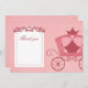 Cette super mignonne fille merci carte à plat a un thème princesse. Dans l'arrière - plan, il y a un arrière - plan à rayures roses avec un chariot rose sur le côté droit. Sur le côté gauche, il y a un espace blanc pour que vous écrivez à la main dans votre message de remerciement à la maison, ou customisez-le avec votre propre texte à imprimer. © 2012 Jessica Weible/JW Illustrations