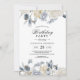 Célébrez avec style grâce à cette élégante invitation d'anniversaire sur le thème de l'hiver, qui présente de délicates fleurs bleues et blanches à l'aquarelle, des accents beige doux et une verdure botanique délicate. L'œuvre florale raffinée encadre une mise en page magnifiquement équilibrée avec une typographie classique serif et manuscrite, créant un look intemporel et sophistiqué adapté à tout âge.