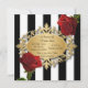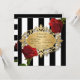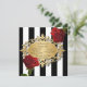 Invitation Élégantes rayures noires et blanches et roses roug