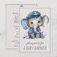 Cette invitation de fête prénatale pour bébé garçon présente un adorable bébé éléphant habillé d'une chemise rayée bleu nautique et blanche avec une casquette d'ancre. Personnalisez l'avant et l'arrière avec le texte spécial de votre choix.