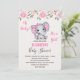 Invitation Eléphant de bébé rose et Baby shower frontalier Ro