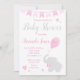 Invitation Eléphant mignon avec Baby shower de ballon fille