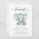 Une mignonne invitation baby shower pour couples sans sexe avec "A Sweet Little Peanut Is On Her Way" écrite dans une typographie moderne gris-doux et un script avec des swashes, et une aquarelle verte menthe d'un bébé éléphant. Personnalisez le nom et les détails du baby shower des parents en utilisant une simple typographie grise. Vous pouvez également spécifier le sexe du bébé si vous le souhaitez (p. ex. "Il est en route").