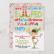 Super Mignonne Faisons la fête du pyjama de Noël Elfed. Comprend un elfe heureux, des sucres de canne, des polices amusantes et un ciel enneigé léger de lin antique. Idéal pour une fête de sommeil ou une fête d'anniversaire.