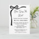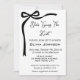 Une simple invitation en noir et blanc Elle noue le noeud Black Bow à la frontière avec la douche nuptiale. Modèles qui vous permettent de modifier facilement le texte : police, couleur et taille du motif. Joli doodle arc dessiné à la main et typographie de script.
