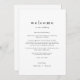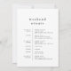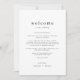 Ce simple modèle d'itinéraire de week-end mariage de la Collection Emelia est parfait pour un mariage minimaliste. Le design en noir et blanc présente une typographie moderne sans ornement boho, au style minimaliste unique. Le recto de la note de sac de bienvenue comporte une lettre de bienvenue mariage et le verso présente la chronologie de l'itinéraire mariage. Ces notes sont parfaites pour les mariages de destination et les sacs de bienvenue des clients de l'hôtel.