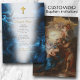 Un beau design baptiste avec de l'aquarelle en marbre bleu émeraude, Croix d'or et une icône chrétienne du baptême de Jésus-Christ au verso de la carte. Un design religieux idéal pour le baptême de bébé garçon. La collection de ce design présente des articles de papeterie et de décoration assortis.