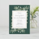 Doté de feuilles d'aquarelle délicats sur un arrière - plan vert émeraude, ce chic faire-part de mariage tout-en-un botanique peut être personnalisé avec toutes vos informations spéciales sur le jour de mariage au verso, y compris votre RSVP, l'hébergement, et le code QR du site mariage. Conçu par Thisisnotme©