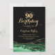 Émeraude vert, noir et or agate 90e anniversaire invitation de fête. Design moderne élégant avec aquarelle verte agate marbre arrière - plan, fausse parties scintillant or et typographie script. Carte invitation branchée parfaite pour une célébration anniversaire féminine élégante. Invitations Zazzle imprimées ou téléchargement instantané modèle imprimable numérique.