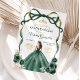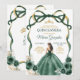 Invitation Emerald Green Bow Princess Gold Crown Quinceañera