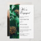 Cette élégante invitation de fiançailles vert émeraude et doré "nous sommes engagés" peut être personnalisée avec vos informations dans la typographie moderne et une photo spéciale au verso. Conçu par Thisisnotme©