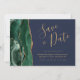 Cette élégante carte de datation moderne comporte une bordure en aquarelle vert émeraude, parée de parties scintillant en faux or. Le texte personnalisable combine écriture manuscrite couleur or, cuivre et polices italiques sur un arrière - plan bleu marine. L'envers est assorti d'une agate vert émeraude et or.