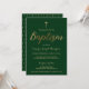 Invitation Emerald Green Gold Cross Custom Boy Baptism