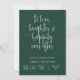 Cette invitation présente un élégant style moderne minimaliste avec de belles calligraphies et des polices de typographie propres et serif sur un arrière - plan vert émeraude. La simplicité de ce design ajoute une touche d'élégance à votre mariage. Il fonctionne bien avec de nombreux thèmes mariages et certainement un grand ajout à votre mariage. Il suffit de customiser les noms et le libellé en quelques étapes simples et personnaliser la carte d'invitation avec votre photo du couple heureux et remplacer le code QR par le vôtre au dos de l'invitation pour donner à votre invitation une touche personnelle agréable. Remarque : Les belles phrases élégantes de la typographie "à l'amour, au rire, et heureux toujours après" sur le devant de l'invitation ET "pour plus de détails sur notre mariage & à rsvp sur notre site mariage" au dos de l'invitation avec d'autres éléments d'illustration graphique comme les lignes ne peuvent pas être modifiés, modifiés, déplacés, ou supprimés. Elles sont réparées. Si vous devez modifier la couleur, vous pouvez customiser la carte d'invitation. Vous pouvez customiser et personnaliser l'invitation afin de répondre à vos besoins mariages et cliquez simplement sur personnaliser de l'invitation. Vous pouvez facilement personnaliser l'invitation avec le texte comme un téléchargement numérique et l'envoyer électroniquement et le partager avec vos invités par SMS, email, ou médias sociaux. Ou vous pouvez également choisir de poster l'invitation concernant vos détails à vos invités. Ou vous pouvez obtenir les deux — invitation imprimée et obtenir l'invitation sous forme numérique en téléchargement instantané.