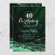 Émeraude vert et argent agate 40e anniversaire invitation de fête. Design élégant et moderne avec aquarelle agate marbre arrière - plan, faux parties scintillant argent et typographie script. Carte invitation branchée parfaite pour une célébration anniversaire féminine élégante. Invitations Zazzle imprimées ou téléchargement instantané modèle imprimable numérique.