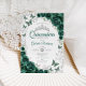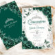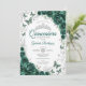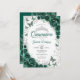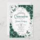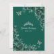 Emerald green silver and white Quinceanera celebration invitation. Features script font, silver butterflies, watercolor roses and tiara. Perfect for an elegant princess style glam celebration. Personalize with your own details. Printed Zazzle invitations or instant download digital printable template.