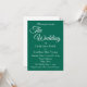 Style simple, faire-part de mariage qui présente un arrière - plan couleur vert émeraude tendance avec les futurs noms de mariée et de mariée et la date de l'événement, l'heure, l'emplacement et le registre imprimé en blanc, stylisé. Personnalisez votre faire-part de mariage en remplaçant l'info par la vôtre. Sélectionnez le style et la quantité de papier d'invitation. Conçu pour coordonner avec notre collection Mariage Emerald Green Simple Style.