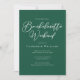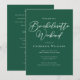 Cette solide invitation de week-end bachelorette vert émeraude présente un script blanc classique pour une mariée qui aime le plein air et la nature. Célébrez votre ami avec cette couleur tranquille sur cet invitation de soirée chic et minimaliste.
