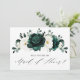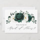 Elégante verte émeraude & ivoire blanc fleuri botanique serez-vous ma servante d'honneur Invitation avec des roses blanches et d'élégants feuilles d'eucalyptus vert aquarelle. Veuillez me contacter pour toute aide sur la personnalisation ou si vous avez besoin d'un autre produit avec ce design.