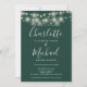 Doté de jolies lampes à cordes et de noms de style signature, cet élégant faire-part de mariage vert émeraude peut être personnalisé avec toutes vos informations spéciales sur le jour de mariage au verso, y compris votre RSVP, l'hébergement et des détails supplémentaires. Conçu par Thisisnotme©