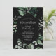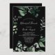 Cette invitation à la répétition noire dans la verdure émeraude est parfaite pour une répétition mariage boho. Le design élégant et rustique présente des feuilles d'aquarelle vert foncé moody et des eucalyptus aux tons bohèmes modernes.