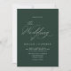 Invitations de mariage classiques avec un script vintage. Police blanche sur un arrière - plan vert foncé contrastant.