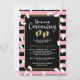 Cérémonie de désignation mignonne pour les jumelles avec des empreintes en blanc et or éparpillées sur un arrière - plan rayé noir et rose. La cérémonie de désignation est écrite dans un script charmant. Ajoutez les noms de vos jumeaux et les détails de la cérémonie de désignation.