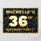 La façade de cette carte d'invitation captivante et optimisée pour les fêtes et fêtes de trente-sixième anniversaire comporte un nom personnalisé, un grand numéro "36e", le message "FÊTE D'ANNIVERSAIRE !", et une frontière. L'arrière - plan de l'avant dispose d'un motif étoilé multicolore et dynamique. Le verso présente des détails personnalisés sur l'événement, tels que la date, l'heure, le lieu et toute autre information pertinente. Des invitations personnalisées comme celles-ci pourraient être une façon amusante pour les invités invitations d’une fête d’anniversaire ou d’une réunion organisée pour célébrer le 36e anniversaire de quelqu’un. [~Z0000600]