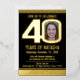 Invitation En Aluminium 40e fête d'anniversaire noir et feuille d'or photo