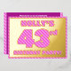 La face avant de cette carte d'invitation audacieuse et amusante de fête de quarante-troisième anniversaire comporte un nom modifiable, un grand numéro "43e", le message "FÊTE D'ANNIVERSAIRE !", et une bordure, toutes avec un motif féminin rose foncé et rose clair. Le verso présente des détails personnalisés sur l'événement, tels que la date, l'heure, le lieu/lieu et toute autre information utile. Des invitations customisées comme celles-ci pourraient être utilisées pour les participants invitations à une fête d’anniversaire qui se tient pour célébrer le 43e anniversaire de quelqu’un. [~Z0000597]