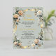 Un arrière - plan vert sage. Décoré de fleurs blanches et jaunes et d'un ruban doré. Personnalisez et ajoutez un nom et des détails.