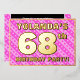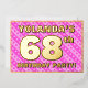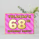 La façade de cette carte d'invitation de fête de soixante-huitième anniversaire optimisée comporte un nom personnalisé, un grand numéro "68e", le message "FÊTE D'ANNIVERSAIRE !", et une frontière. L'arrière - plan de l'avant est doté d'un motif à rayures rose clair et rose foncé, aux formes cardiaques. Le verso présente des détails personnalisés sur l'événement, tels que la date, l'heure, l'emplacement/le lieu et toute autre information qui peut être utile. Des invitations personnalisées comme celles-ci pourraient être une façon amusante pour les invités/participants invitations à une fête d’anniversaire ou à une réunion qui a lieu pour célébrer le 68e anniversaire de quelqu’un. [~Z0000603]