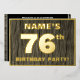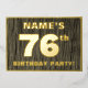 Le recto de cette audacieuse carte d'invitation pour fêter soixante-seizième anniversaire/fête comporte un nom modifiable, un grand numéro "76e", le message "FÊTE D'ANNIVERSAIRE !", et une frontière, le tout en papier peint. L'arrière - plan de l'avant est doté d'un motif rustique, mais sophistiqué, imitation grain de bois inspiré. Le verso présente des détails personnalisés sur l'événement, tels que la date, l'heure, le lieu et toute autre information pertinente. Des invitations personnalisables comme celles-ci pourraient être utilisées pour les participants invitations à une fête d’anniversaire qui se tient pour honorer le 76e anniversaire de quelqu’un. [~Z0000598]